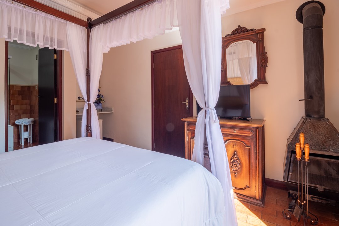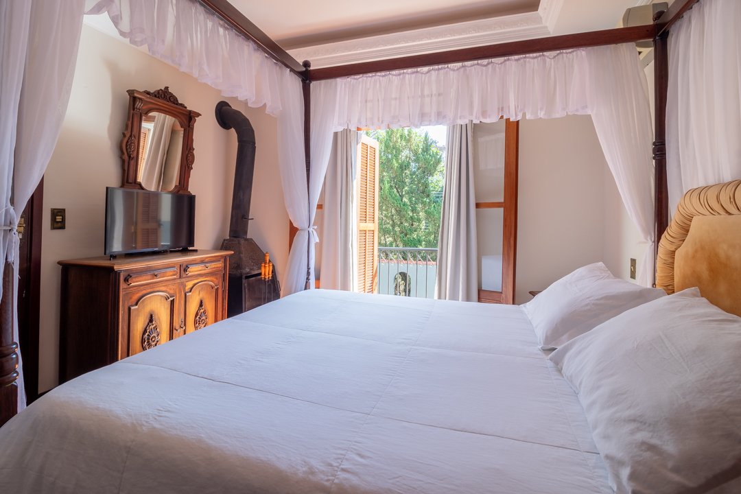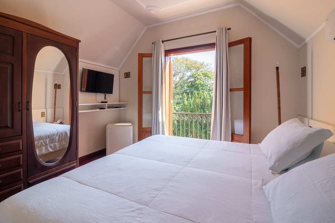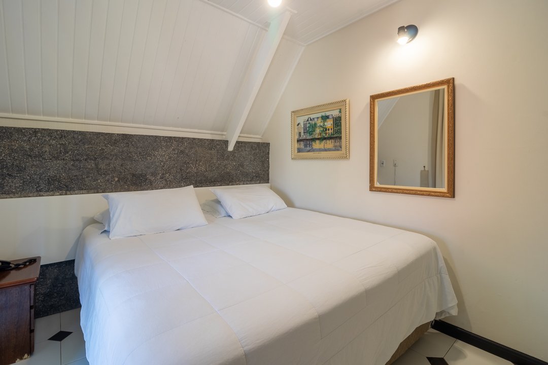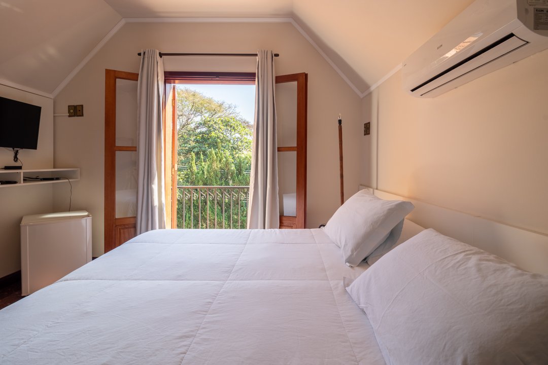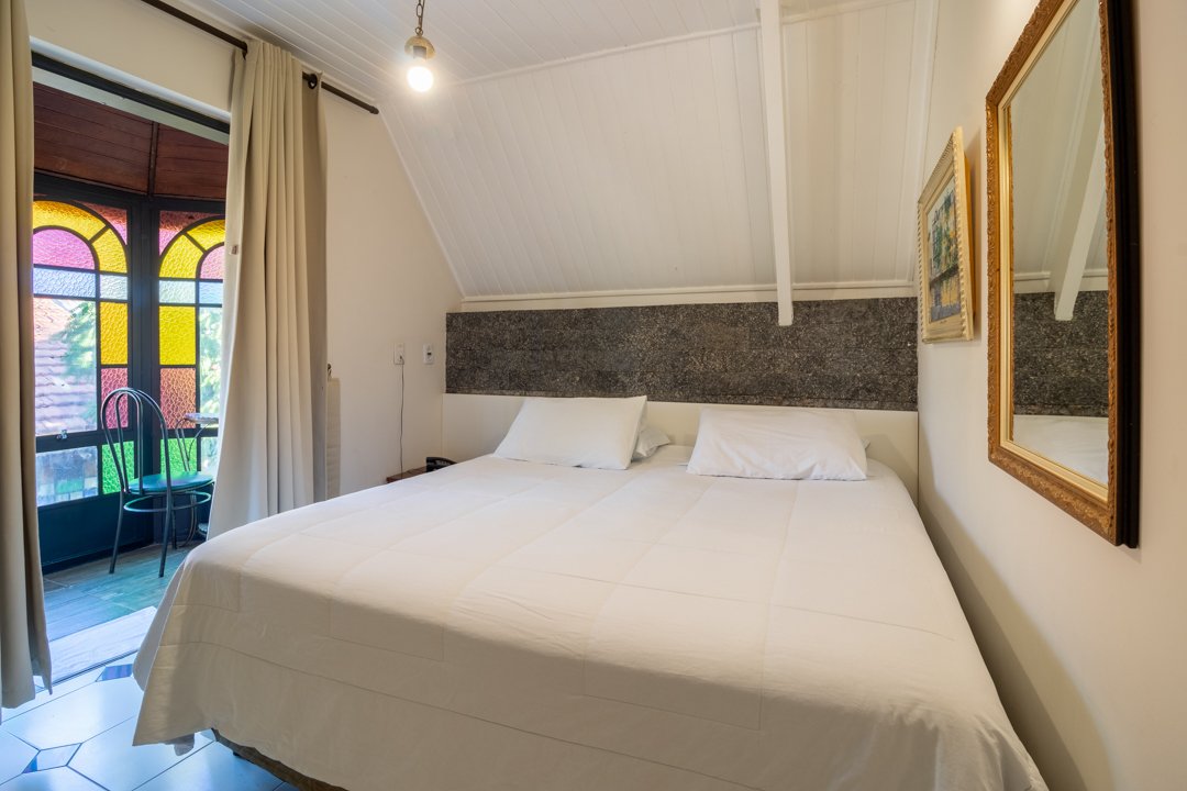 Clássico e aconchegante, voltado ao jardim. Ideal para casais que buscam descanso e simplicidade com charme.