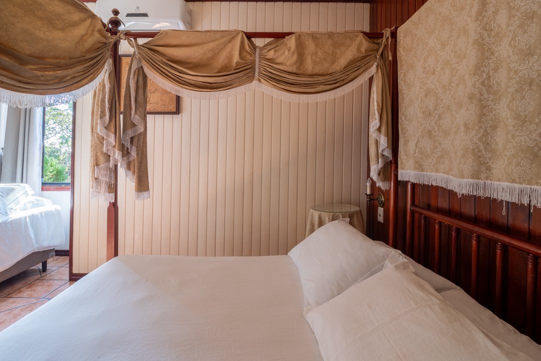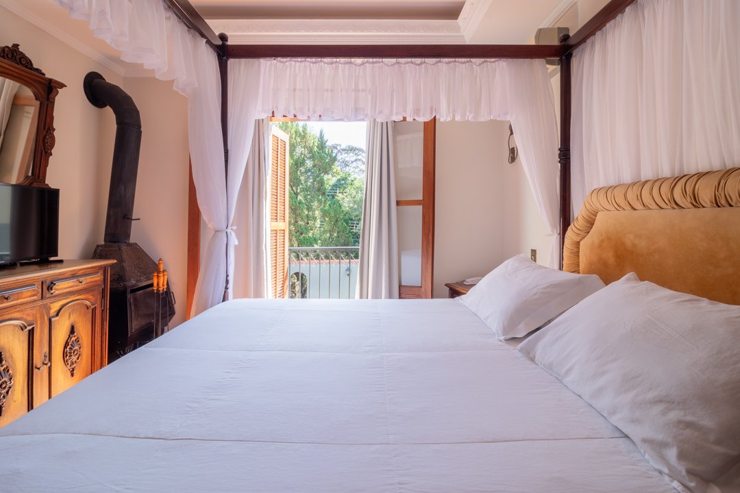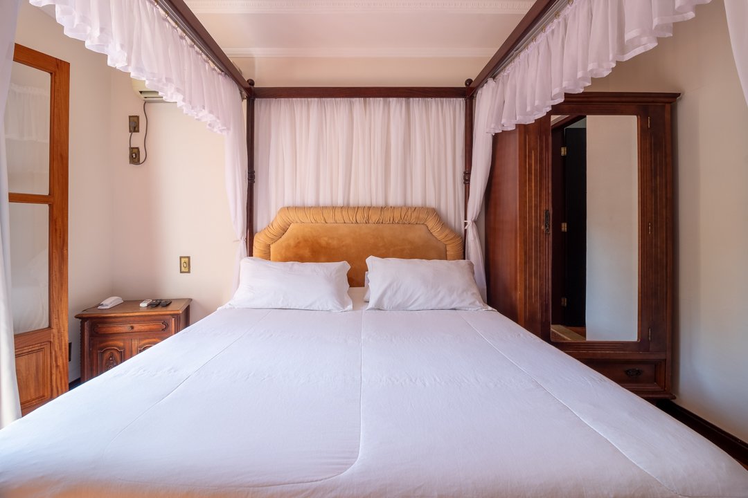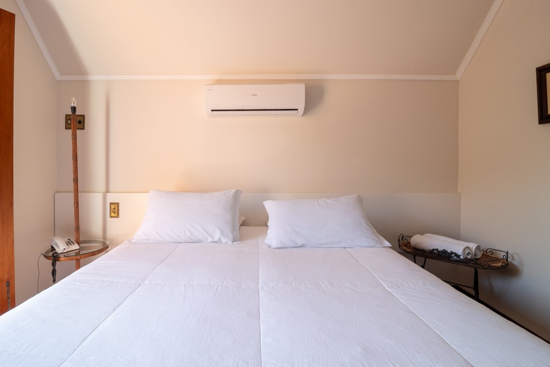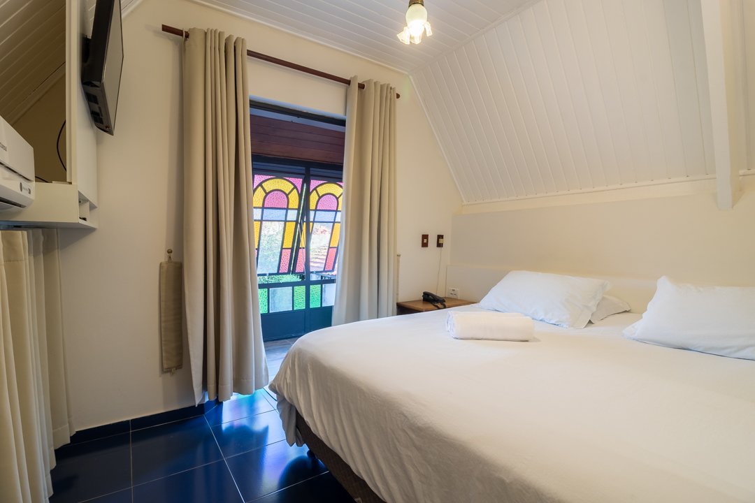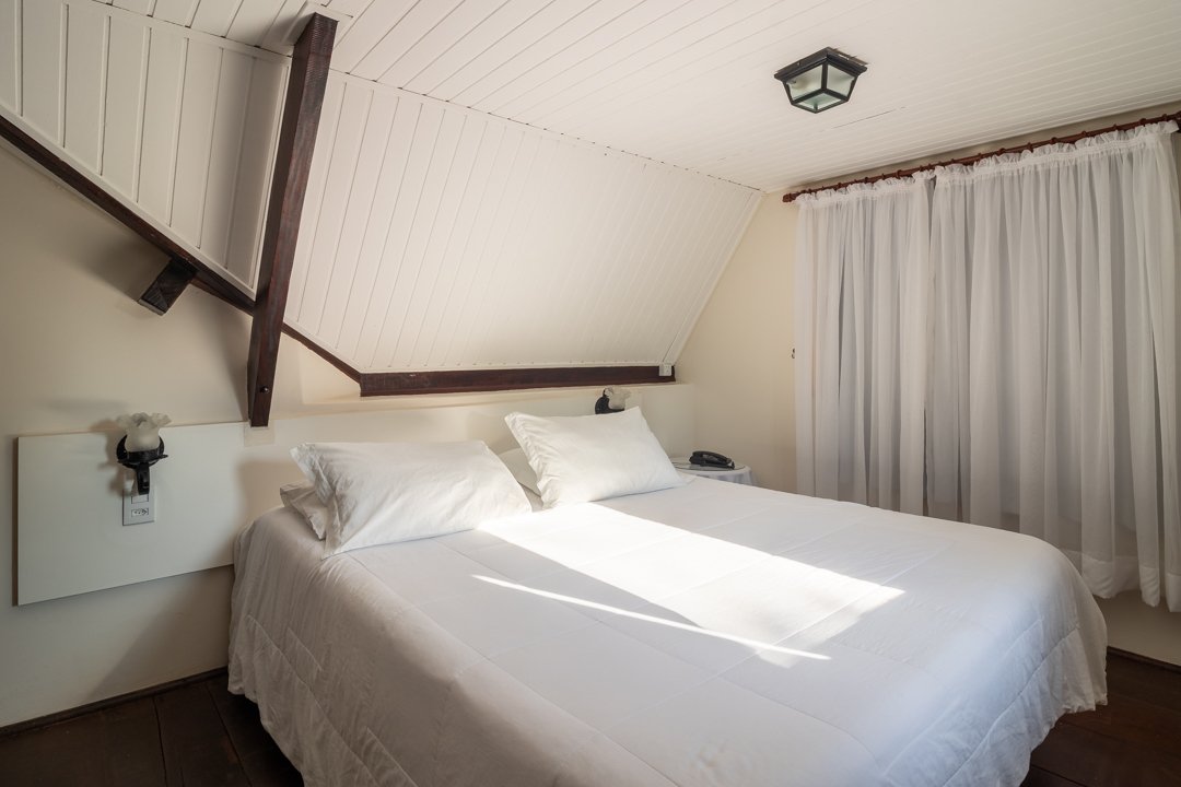 Clássico e aconchegante, voltado ao jardim. Ideal para casais que buscam descanso e simplicidade com charme.