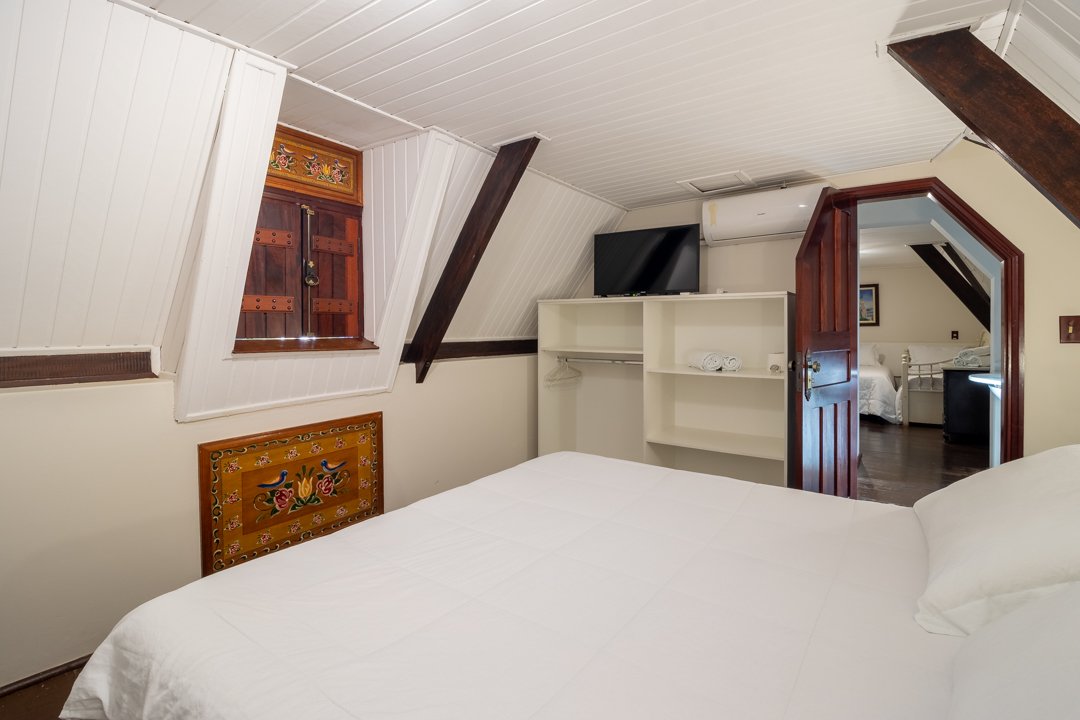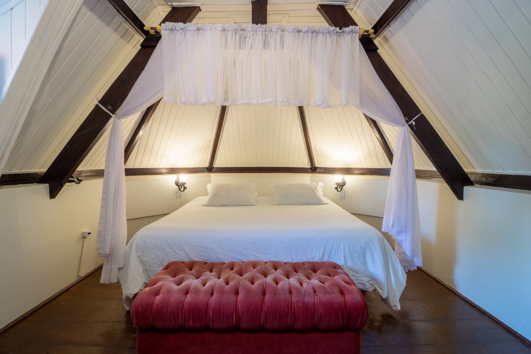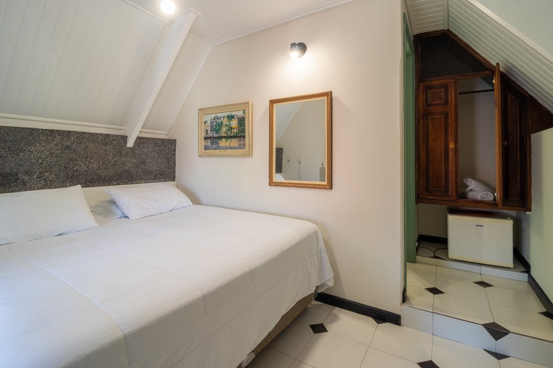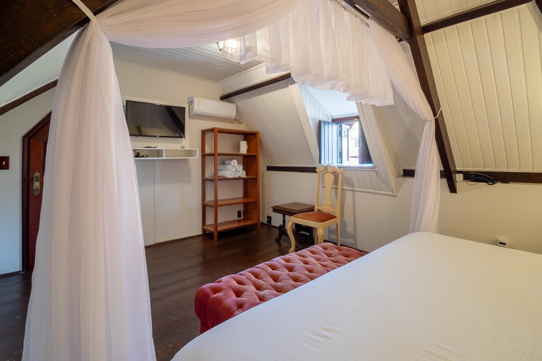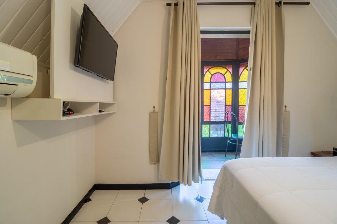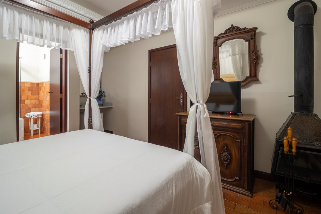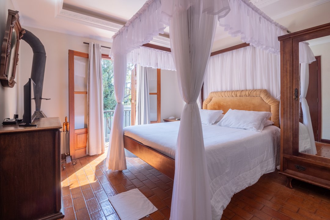 Clássico e aconchegante, voltado ao jardim. Ideal para casais que buscam descanso e simplicidade com charme.