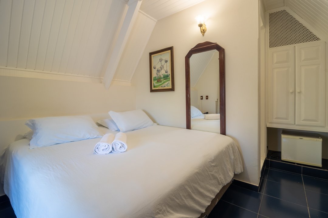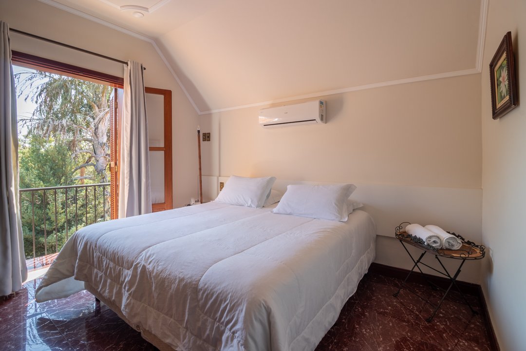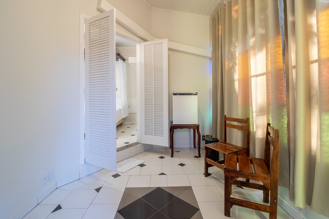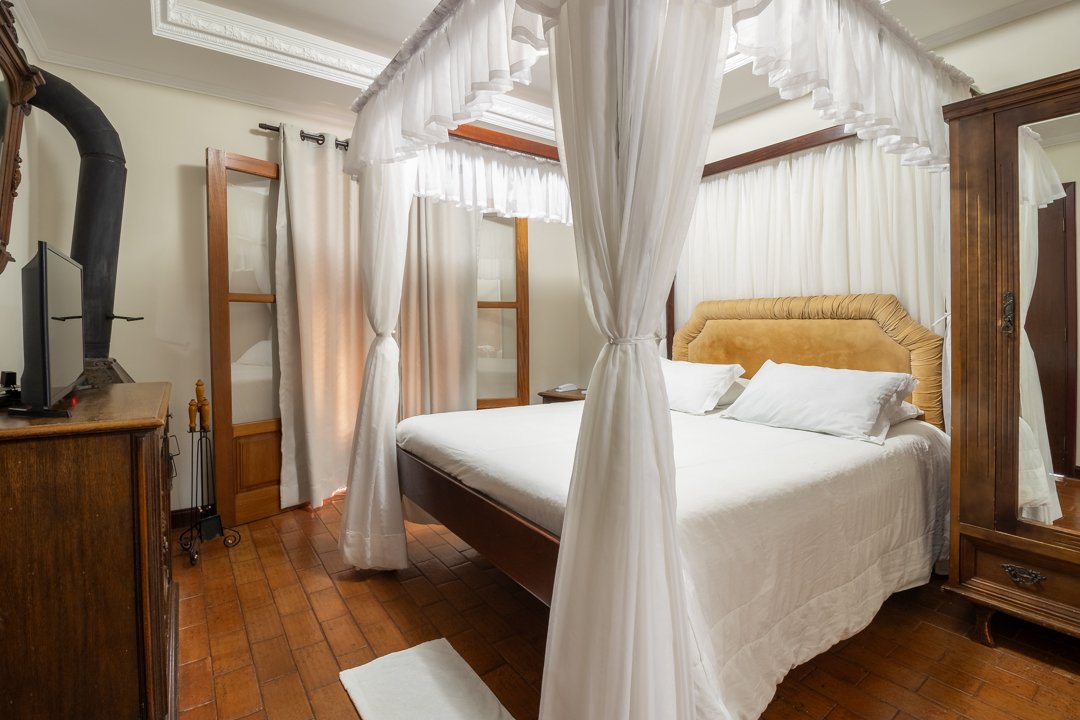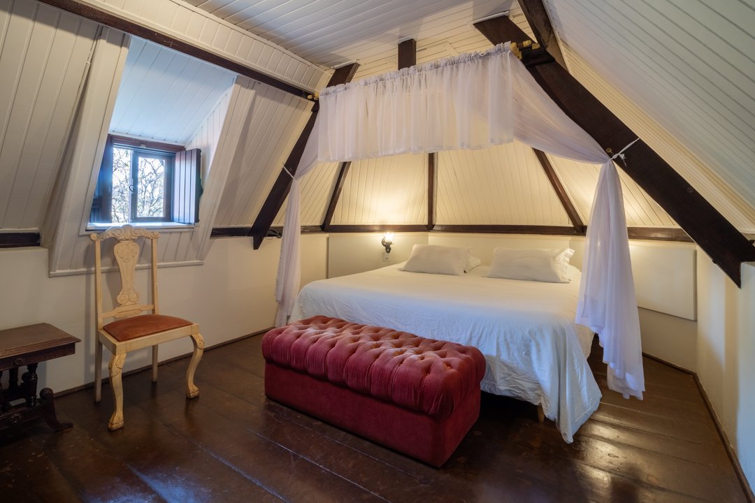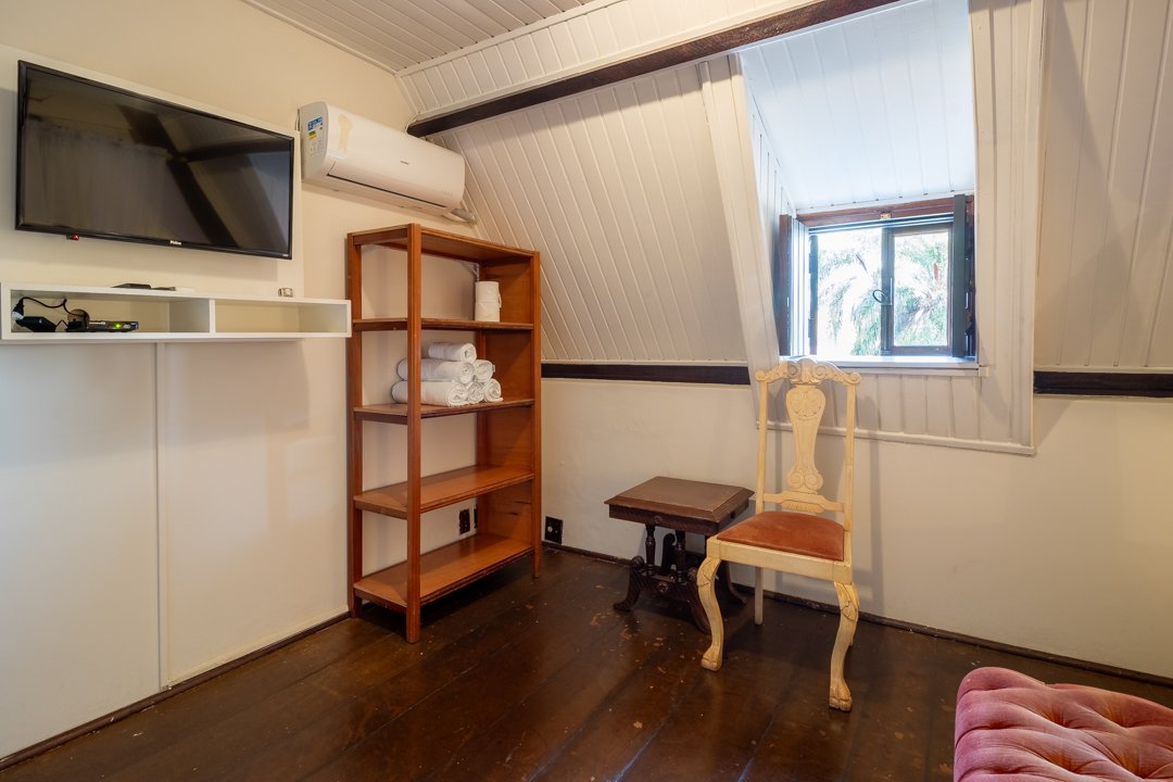 Clássico e aconchegante, voltado ao jardim. Ideal para casais que buscam descanso e simplicidade com charme.