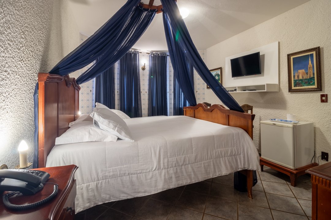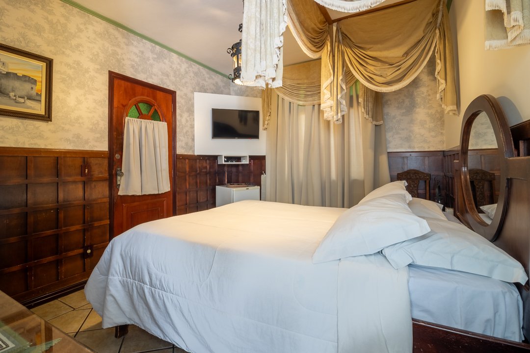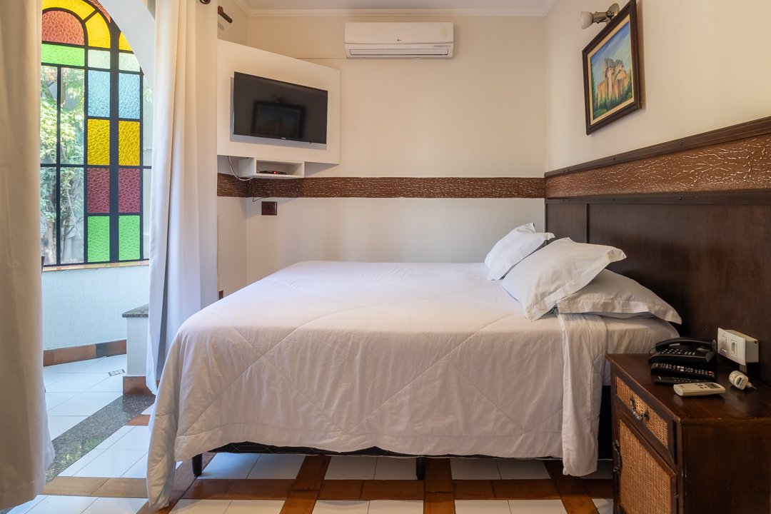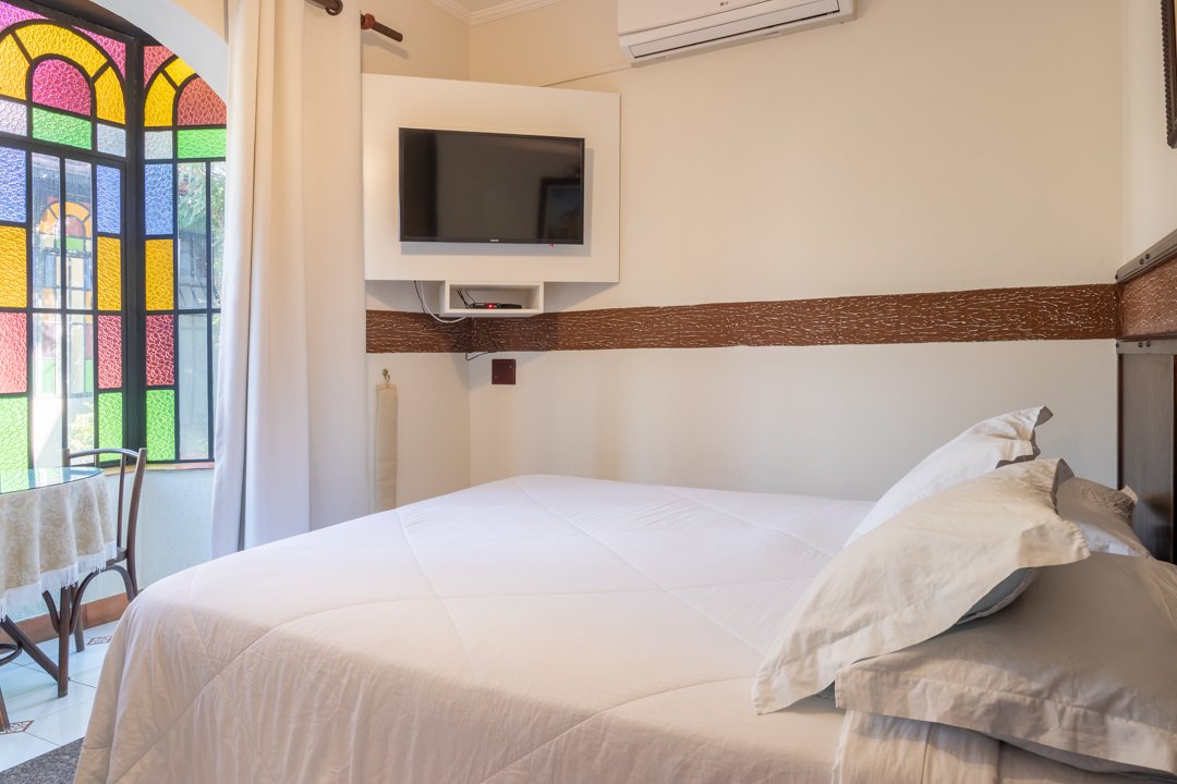 A Pousada Estalagem oferece suítes amplas, confortáveis e bem equipadas, ideais para quem busca praticidade e descanso no coração de Brotas.