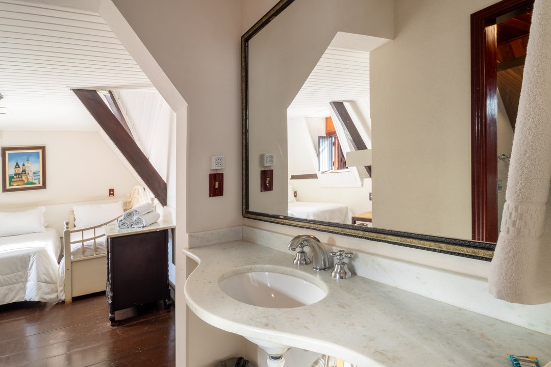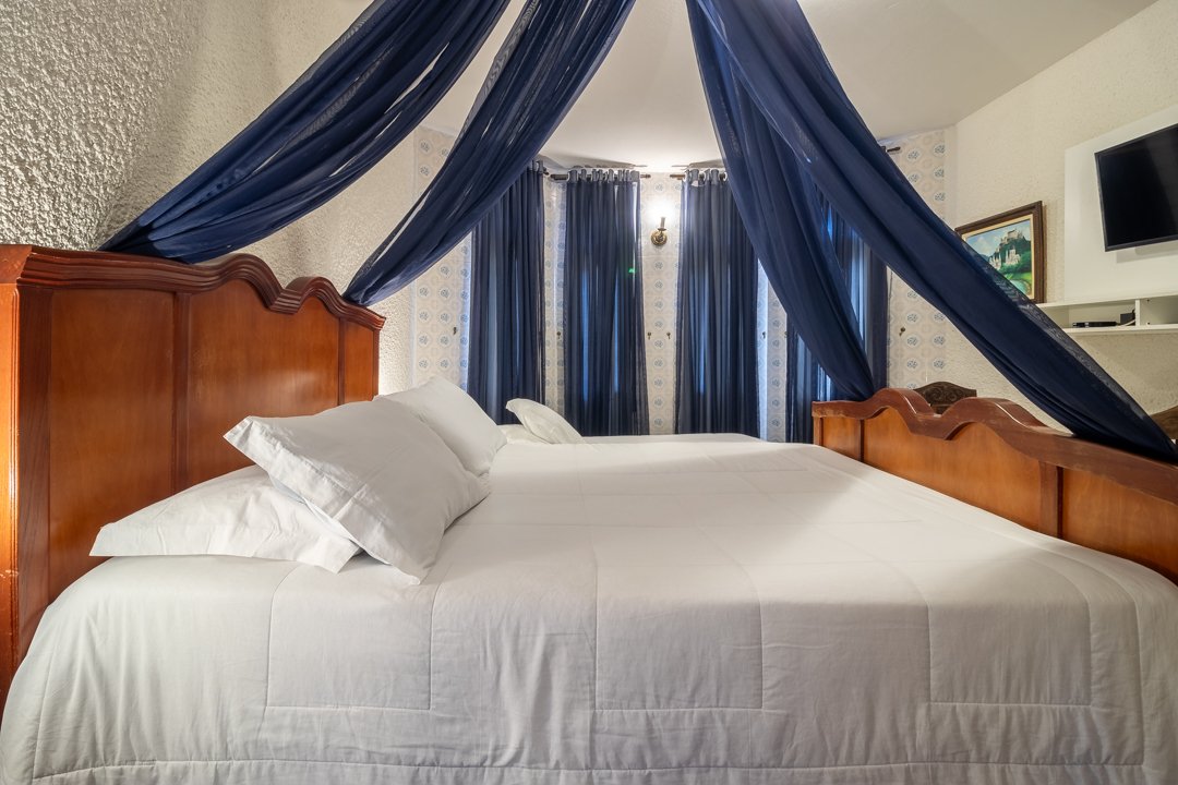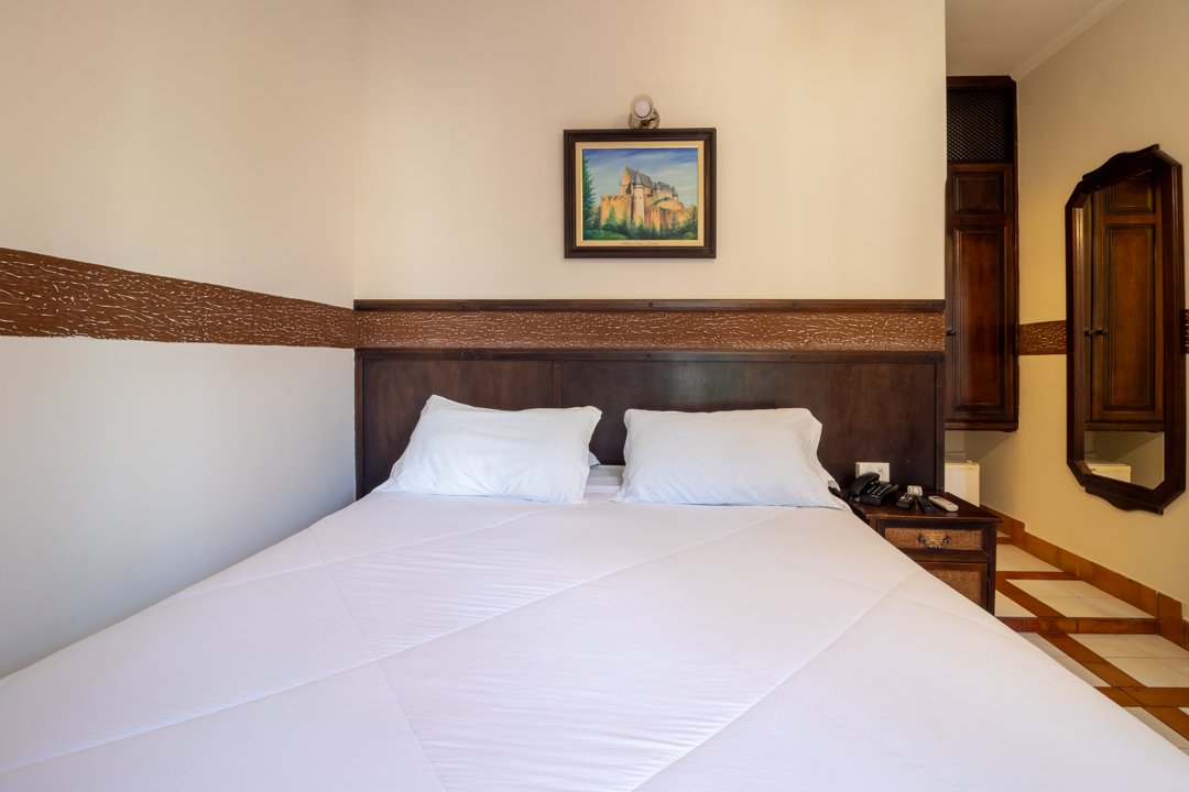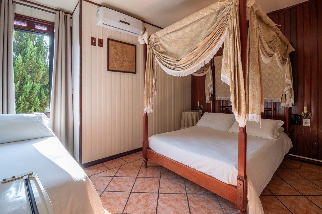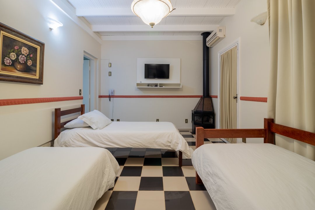A Pousada Estalagem oferece suítes amplas, confortáveis e bem equipadas, ideais para quem busca praticidade e descanso no coração de Brotas.