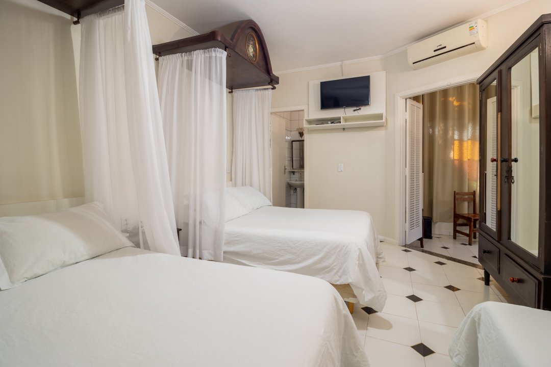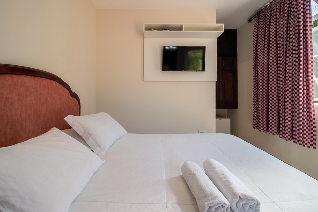 Todas as acomodações contam com ar-condicionado, TV, frigobar e Wi-Fi, garantindo o conforto que você precisa após um dia de passeios e aventuras.