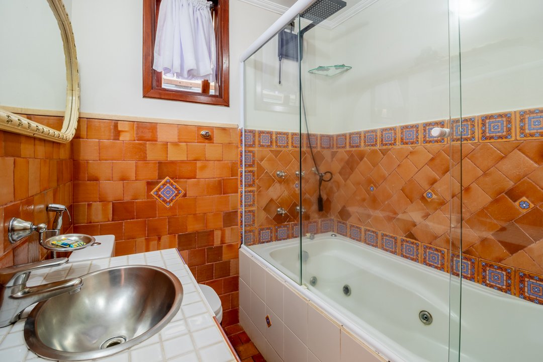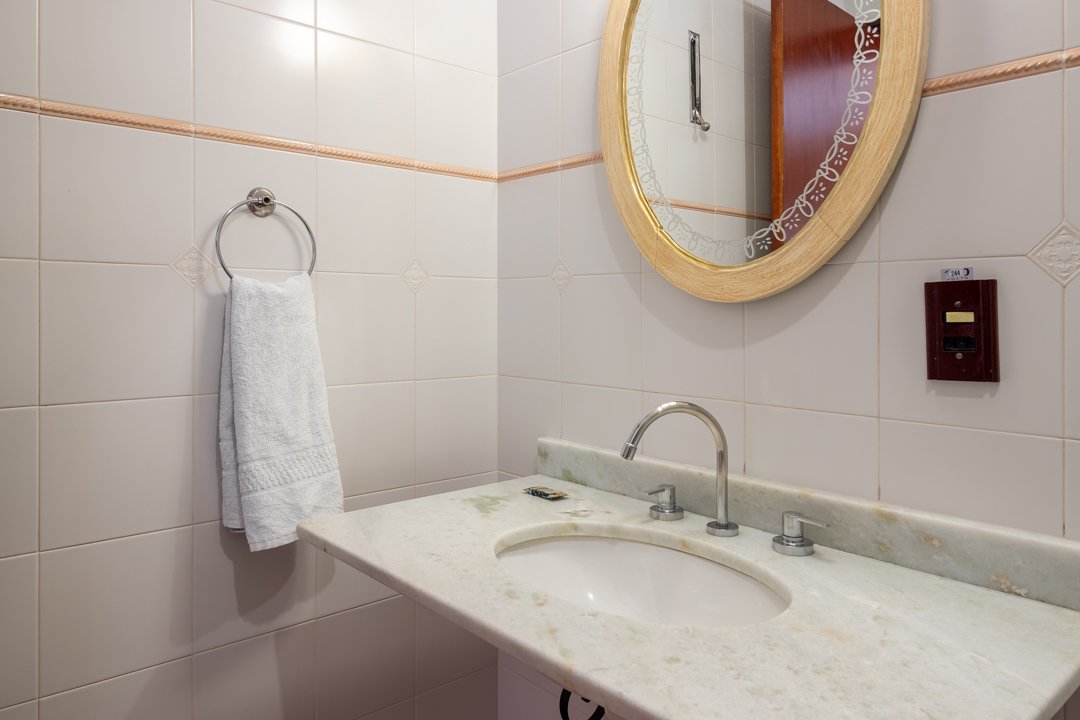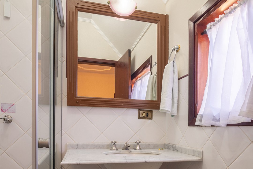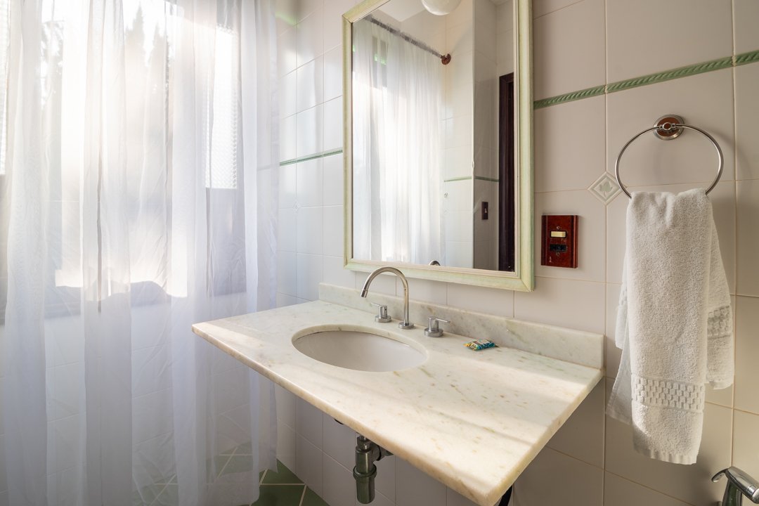 Ambiente iluminado com vista para o Parque dos Saltos. Banheira e varanda que convidam ao relaxamento absoluto.