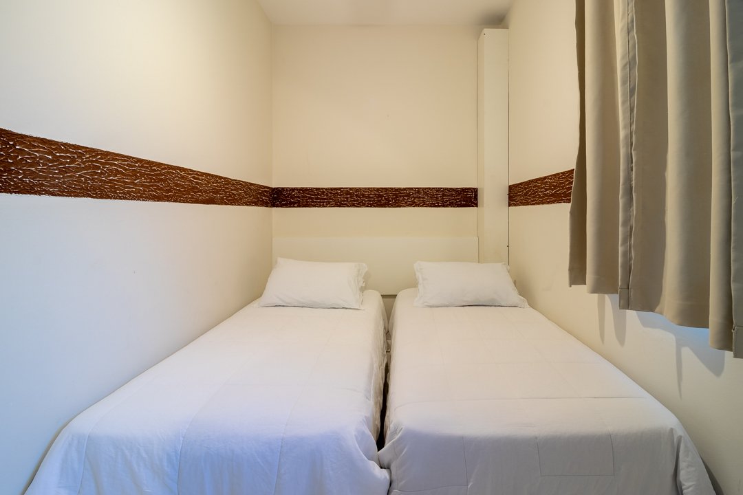 Aconchego prático e silencioso, ideal para casais ou pequenas famílias que valorizam conforto e tranquilidade após os passeios.